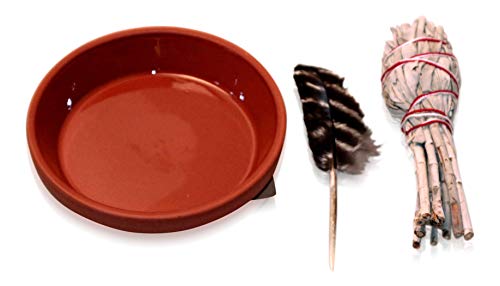 / Native Spirit cute smudge set with original californian white sage: a small clay bowl (10cm) and small original wild turkey feather 3"