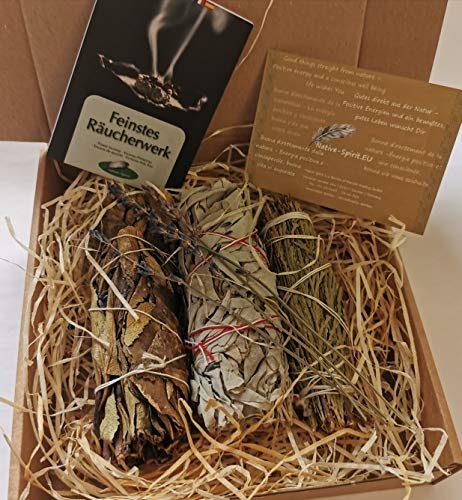 / Native Spirit Triple California Smudge Kit – Pack of 3 – Yerba Santa, White Sage (salvia apiana) and Cedar, approx. 5 inches Each – harvested and handmade in Californis