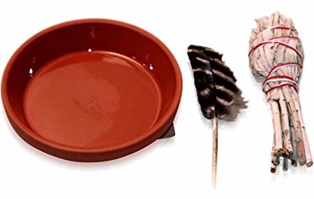 Native Spirit cute smudge set with original californian white sage: a small clay bowl (10cm) and small original wild turkey feather 3"